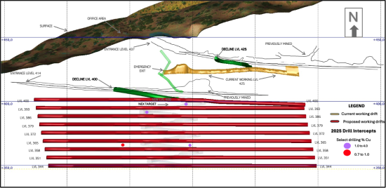 - During the month of September, the Company extracted 2,270 tonnes of copper-gold-iron mineralized from the 425 m level along north-east and southwest mining drifts (Figure 1.)